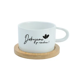 Součástí balení je elegantní bambusový podšálek, který ochrání Váš stůl a dodá servírování přírodní nádech.