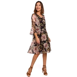 Tieto splývavé šaty z kvetinového šifónu zaujmú nielen svojou potlačou, ale aj strihom. Sú mierne voľné a majú znížený pás, takže sa skvele nosia a fungujú na cestách. Ideálne šaty na horúce dni. Šaty sa nosia cez hlavu a majú podšívku.