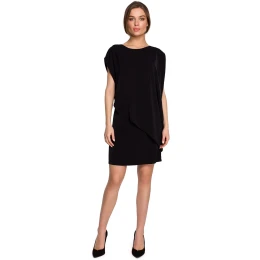 Tieto šaty majú nekonečný zoznam výhod. Pohodlný rovný strih a dĺžka mierne nad kolená. Okrem toho boli navrhnuté vo vrstvách: vrchná, asymetrická vrstva siaha až po líniu bokov, takže šaty sa prispôsobia každej postave. Šaty sa zapínajú na krytý zips.