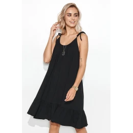 Tieto letné šaty sú vyrobené z hrejivého dotykového úpletu. Šaty majú tenké ramienka ukončené romantickým zaväzovaním. Dievčenský štýl šiat dopĺňa volánik všitý do spodnej časti šiat. Šaty sú veľmi pohodlné a ležérne. Môžete ich nosiť voľne, previazané opaskom, remienkami alebo letnou šatkou. Oblečte si ich s módnymi kovbojskými topánkami alebo obľúbenou športovou obuvou. V každom prípade budú šaty vyzerať skvele. Noste ich tak, ako sa vám páči a ako sa cítite. Móda je predsa o sebavyjadrení.