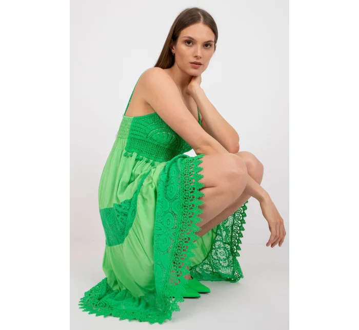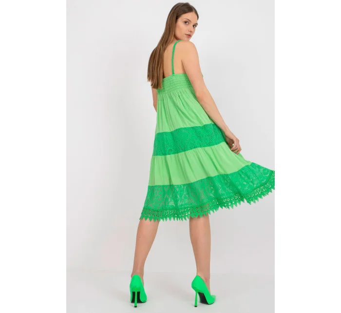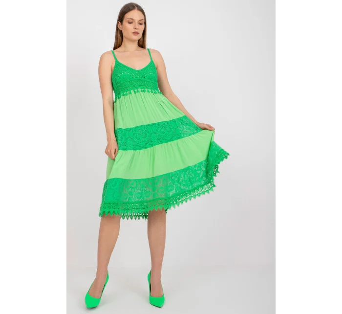 Letné šaty s rozšíreným strihom a ramienkami. Šaty sú podšité a majú srdiečkový výstrih. Šaty s ozdobnou čipkou a prelamovaným vzorom.
