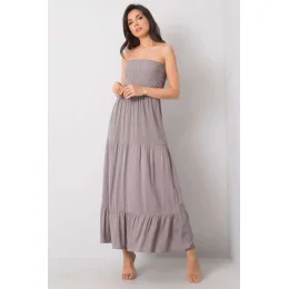 Dlhé letné šaty bez ramienok a rukávov. Vrchná časť šiat s podpornými gumičkami, volánik v spodnej časti.