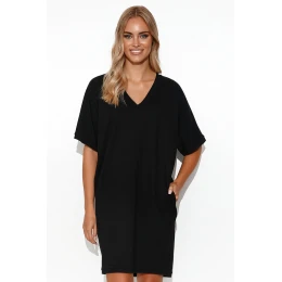 Mimoriadne ležérne, minimalistické teplákové kimonové šaty. Ich dĺžka zvýrazňuje nohy, vďaka čomu sa skvele hodia k topánkam. Odvážny výstrih odhaľuje kľúčne kosti a vytvára priestor na krásne šperky. Na bokoch sú nakladané vrecká. Šaty umožňujú voľnosť pohybu. Dámy s typom postavy jablko sa v nich budú cítiť skvele. Šaty maskujú brucho a opticky predlžujú krk. Krátke kimonové rukávy zabraňujú odhaleniu spodnej bielizne. Vďaka tomu tepláky pôsobia žensky a elegantne.