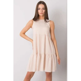 Béžové šaty na každodenné nosenie so zapínaním na krytý zips. Šaty bez rukávov as volánikom v spodnej časti.