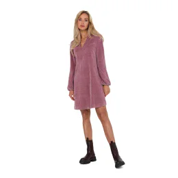 Velúrové šaty s dlhými rukávmi a výstrihom do V. Šaty majú trapézový strih, bez podšívky. Navrhnuté a ušité v Poľsku.