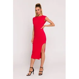 Představujeme výjimečné pletené šaty, které byly s vášní a precizností vytvořeny v Polsku, kde se tradice krejčovství snoubí s moderním designem. Tyto šaty jsou skutečným uměleckým dílem, které v sobě spojuje pohodlí při nošení s elegancí a jedinečností. Šaty jsou dokonale ušité na míru a jemně zdůrazňují ženskou siluetu. Nápadný výřez na nohou dodává celým šatům jedinečný charakter a každému pohybu dodává nádech smyslnosti. Model se nosí přes hlavu, díky čemuž je jeho nošení rychlou a snadnou činností, ideální pro nejrůznější zvláštní příležitosti. Díky střihu bez rukávů jsou šaty ideální pro teplé dny nebo večerní vycházky, ponechávají odhalená ramena a dodávají celkovému vzhledu lehkost. Midi délka dodává šatům klasický vzhled a zároveň umožňuje volnost pohybu. Jedinečným prvkem je ozdobná plaketa s vyraženým logem umístěná na zadní straně šatů. Jedná se o jemný, ale účinný detail, kter