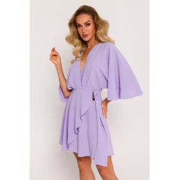 Představujeme výjimečné šaty z krepové látky, které byly hrdě navrženy a ušity v Polsku. Tyto mini šaty jsou skutečným mistrovským dílem polského krejčovství a spojují eleganci, pohodlí a originální design. Krepová tkanina použitá k výrobě těchto šatů je látka s jemnou strukturou, která dokonale sedí na těle a dodává šatům jemný, vzdušný charakter. Polský podíl na designu těchto šatů odráží pozornost věnovanou kvalitě zpracování a dovedné kombinaci moderních trendů s krejčovskou tradicí. Střih šatů je rozšířený, což jim dodává lehkost a pohyblivost. Netopýří rukávy dodávají šatům prvek originality a vytvářejí jemný, jedinečný detail, který upoutá pozornost. Šaty přejímají obálkový tvar se skrytým vázáním uvnitř, což zajišťuje nejen pohodlné nošení, ale také elegantní vzhled. Ozdobné vázání se sponou na vnější straně dodává šatům charakter a eleganci a zároveň vytváří designový módní doje