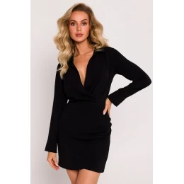 Představujeme výjimečné šaty z krepové látky, které byly pečlivě navrženy a ušity v Polsku. Tyto mini šaty jsou harmonií elegance, třídy a polské krejčovské preciznosti. Krepová tkanina použitá k výrobě těchto šatů se vyznačuje jemnou a decentní strukturou, která dokonale podtrhuje eleganci a lehkost této kreace. Polský design těchto šatů je výrazem nejvyšší kvality zpracování a spojuje tradici s moderním přístupem k módě. Horní část šatů má košilový charakter s obálkovým výstřihem ve tvaru písmene V, díky němuž působí celek smyslně a elegantně. Límec navíc dodává šatům punc noblesy. Díky dlouhým rukávům s manžetami, které se zapínají na knoflíky, jsou šaty ideální i pro chladnější dny, přičemž si zachovávají eleganci a jemnost. Spodní část šatů je vypasovaná v obálkovém střihu, s nápadným řasením na bocích. Jedná se o detail, který dodává šatům jemný výraz a celému vzhledu dodává lehkost. Skry