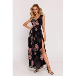 Představujeme výjimečné šaty z šifonové tkaniny, navržené a ušité s plným nasazením v Polsku. Tyto šaty v maxi délce jsou kombinací elegance, lehkosti a jedinečného stylu, který vyzařuje z polského krejčovského řemesla. Šaty se vyznačují vysokým rozparkem na noze, který jim dodává jedinečný charakter a spojuje moderní design s jemnou erotikou. Střih s vypasovaným vrškem bez rukávů a s hlubokým výstřihem ve tvaru písmene V vyzařuje smyslný půvab. V pase je umístěn nařasený pásek, který šatům dodává jemný nádech a zdůrazňuje ženskou siluetu. Zadní část pasu je elastická, což zajišťuje, že se šaty dokonale přizpůsobí individuálnímu tvaru těla, a zároveň zaručuje pohodlné nošení. Spodní část šatů je rozšířená, což vytváří nápadné volánky a celý vzhled odlehčuje. Šaty jsou plně podšité, což umožňuje šifonové látce splývat po těle v jemných plisovaných záhybech a dodává celé kreaci na jemnosti. Skry