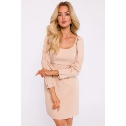 Pôvabné mini šaty z vysokokvalitnej tkaniny, ideálne na špeciálne príležitosti. Strih pod prsiami zdôrazňuje ženskú siluetu, zatiaľ čo hlboký štvorcový výstrih dodáva originalitu a jemne odhaľuje dekolt. Šaty majú dlhé rukávy s jemnými púčikmi na ramenách, ktoré dodávajú objem, a šikmý strih v spodnej časti pre dokonalé prispôsobenie. Krytý zips na chrbte umožňuje pohodlné nosenie a dokonalé prispôsobenie. Šaty sú ľahké a bez podšívky. Navrhnuté a ušité v Poľsku, sú kvintesenciou elegancie a ženského šarmu.