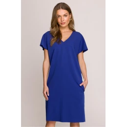 Šaty s voľným strihom, ktorý poskytuje voľnosť pohybu a pohodlie počas celého dňa. Dĺžka po kolená robí z týchto šiat univerzálnu voľbu na mnohé príležitosti. Krátke rukávy dodávajú šatám ľahkosť a sú ideálne na teplejšie dni. Výstrih do V jemne zvýrazňuje krk a dodáva šatám ženský charakter. Skrytý zips na chrbte zabezpečuje jednoduché obliekanie a dodatočný rozparok v spodnej časti chrbta dodáva šatám elegantný nádych. Šaty sú bez podšívky, vďaka čomu sú ešte priedušnejšie a pohodlnejšie. Navrhnuté a ušité v Poľsku, čo zaručuje vysokú kvalitu spracovania a pozornosť venovanú detailom. Skvelá voľba pre ženy, ktoré si cenia štýl, pohodlie a eleganciu v každodennom oblečení.