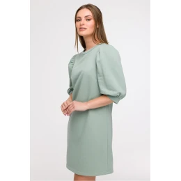 Tieto ľahké a štýlové šaty s voľným, nesediacim strihom sú ideálnou voľbou na každý deň, vhodné na dovolenku aj prechádzky v meste. Šaty vyrobené v Poľsku s ohľadom na pohodlie a ženský štýl očaria mäkkým strihom v tvare písmena A, ktorý sa jemne rozširuje smerom nadol, čím poskytuje voľnosť pohybu. Šaty siahajú pred kolená, majú okrúhly výstrih a efektné 3/4 rukávy s nadýchaným strihom a manžetou dodávajú celku romantický nádych. Šaty nemajú podšívku, sú vzdušné a ľahké, ideálne na teplejšie dni. Strih šiat vyhovuje mnohým typom postavy a obzvlášť dobre vyzerajú na postave v tvare písmena Y, pričom rozšírená spodná časť vyrovnáva proporcie medzi ramenami a bokmi.
