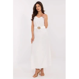 Tento stylový maxi šaty jsou ideální volbou na teplé letní dny. Vyrobené z prodyšné viskózy, poskytují pohodlí nošení a skvěle se hodí do každodenních outfitů. Jednoduchý střih v kombinaci s hladkým, jednobarevným materiálem jí dodává elegantní jednoduchost, která se hodí jak na procházku, tak na setkání s přáteli. Šaty mají výstřih do V, jemně zdobený ozdobným volánkem, co jim dodává ženské kouzlo. Na ramínkách, bez zapínání, snadno se oblékají a jsou velmi pohodlné. Přiložený pásek s přezkou umožňuje zdůraznit pas a dodat postavě požadovaný tvar. Jsou to ideální letní šaty lehké, stylové a univerzální, s jemnými detaily, které přitahují pozornost, aniž by přehlcely celkový vzhled.