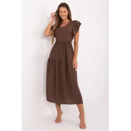 Elegantní a ženské letní šaty s rozkročeným střihem jsou skvělým návrhem jak na každý den, tak do práce. Vyrobené z lehké a prodyšné směsi viskózy a nylonu, poskytují pohodlí i v nejteplejších dnech. Model midi délky krásně padne na postavě a vázání v pase umožňuje jemné zdůraznění pasu. Hladký materiál dodává šatům univerzální elegantní charakter, díky čemuž je snadno kombinovatelný s různými stylizacemi. Krátký rukáv ve formě volánků přidává lehkost a romantické kouzlo, zatímco výstřih ve tvaru srdce opticky zjemňuje krk a přidává ženskou grácii. Šaty se zapínají na knoflíky vzadu, což je stylový detail a usnadňuje oblékání. Je to ideální volba pro ženy, které si cení pohodlí, eleganci a funkčnost, jak v každodenním běhu, tak během klidných letních dní.
