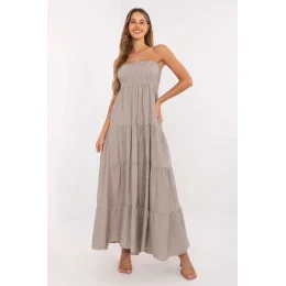 Tieto letné maxi šaty s rozšíreným strihom sú ideálnou voľbou na teplé všedné dni. Sú vyrobené z prírodnej zmesi viskózy a ľanu a poskytujú priedušnosť, ľahkosť a pohodlie počas celého dňa. Model bez ramienok s obdĺžnikovým výstrihom pôsobí žensky a štýlovo. Vrchnú časť šiat zdobia elastické záhyby s gumičkou, ktoré sa dokonale prispôsobia postave a zvýraznia líniu poprsia. Spodná časť je zakončená širokým volánom, ktorý šatám dodáva ľahký a romantický charakter. Model sa bez zapínania ľahko oblieka a pohodlne nosí. Je skvelou voľbou na letné prechádzky, stretnutia s priateľmi alebo výlety, stačí ho doplniť sandálmi a košíkovou taškou a vytvoríte úplne očarujúci outfit.