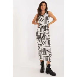 Každodenné midi olovené šaty sú štýlovým a pohodlným návrhom na každý deň. Sú vyrobené z mäkkej, elastickej zmesi viskózy a elastanu, dokonale sa prispôsobia postave a zabezpečia pohodlie pri nosení. Model bez rukávov so ženským srdiečkovým výstrihom jemne zvýrazňuje dekolt a ramená. Geometrický vzor dodáva moderný charakter a priložený opasok na stiahnutie v páse zdôrazňuje ženské tvary. Absencia zapínania zaručuje, že šaty sa dajú ľahko obliecť. Ideálne na každý deň do práce, na nákupy alebo na stretnutie s priateľmi.
