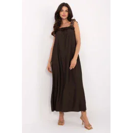 Tieto letné maxi šaty bez ramienok z ľahkej, priedušnej viskózy sú ideálnou voľbou na každodenný outfit počas teplých dní. Strih je mierne rozšírený, čím zdôrazňuje ženskú siluetu a poskytuje voľnosť pohybu. Šaty majú obdĺžnikový výstrih zdobený jemným volánom, ktorý celku dodáva romantický nádych. Hoci prevláda hladký materiál, na ramienkach sa objavuje módny akcent v podobe leopardieho vzoru, ktorý outfitu dodáva trochu dravosti. Model nemá zapínanie, nosí sa cez hlavu, čo zvyšuje pohodlie pri nosení. Ideálne na prechádzky, nákupy alebo letné stretnutia s priateľmi.