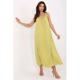 Tieto letné midi šaty v oversize štýle sú ideálnou voľbou na každodennú ležérnu štylizáciu. Sú vyrobené z ľahkej a priedušnej viskózy, sú ideálne na teplé dni, poskytujú pohodlie a ľahkosť. Hladká tkanina a voľný strih zaručujú úplnú voľnosť pohybu a lodičkový výstrih jemne zvýrazňuje dekolt a dodáva ženský šarm. Šaty s tenkými ramienkami, bez zapínania, sa ľahko obliekajú a sú mimoriadne praktické. Sú ideálnym modelom na leto, ľahkým, priedušným a štýlovým vo svojej jednoduchosti.