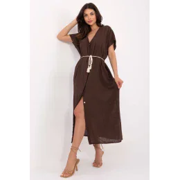 Tieto boho letné košeľové šaty sú pohodlným a štýlovým návrhom na každý deň. Sú vyrobené z prírodnej, priedušnej bavlny a poskytujú pohodlie aj v tých najhorúcejších dňoch. Oversize strih zaručuje voľnosť pohybu a voľný, nezáväzný strih, zatiaľ čo hladká tkanina dodáva šatám univerzálny charakter. Model v midi dĺžke s krátkymi rukávmi a výstrihom do V pôsobí ľahko a žensky. Zapínanie na gombíky skryté pod listom dodáva celku elegantný vzhľad. Ďalšou výhodou sú vrecká na zips a opasok na zaväzovanie s ozdobnými riasami, ktorý umožňuje zvýrazniť pás a dodať oblečeniu boho charakter. Ideálne na letné dni, pohodlné, štýlové a praktické.