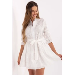 Tieto elegantné rozšírené mini šaty v boho štýle sú ideálnou voľbou na teplé dni a spoločenské, ale aj neformálne príležitosti. Sú vyrobené z prírodnej, priedušnej bavlny s jemným kvetinovým vzorom na materiáli, ktorý šatám dodáva jedinečný šarm a originalitu. Model má 3/4 rukávy s elastickým lemom a volánom, čo celku dodáva ľahkosť a jemnosť. Klasický golier a opasok na zaväzovanie v páse umožňujú zvýrazniť siluetu a podšívka zaručuje pohodlie a plné zakrytie. Šaty sú ideálne na každodenné vychádzky aj formálne príležitosti, spájajú pohodlie so ženským boho štýlom.
