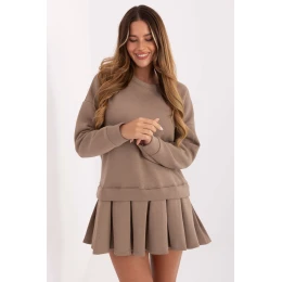 Tieto dámske šaty spájajú pohodlie a ženský štýl a sú ideálne na každodenné príležitosti. Sú vyrobené z mäkkej bavlny s prídavkom elastanu a poskytujú pohodlie pri nosení, pružnosť a príjemné prispôsobenie sa postave. Model má okrúhly výstrih, dlhé rukávy a rozšírený strih, ktorý sa pri pohybe krásne skladá. Plisovaný lem šatám dodáva ľahkosť a jemnú eleganciu, zatiaľ čo zateplenie zaručuje, že sa skvele uplatnia v chladnejších dňoch. Mini šaty bez ďalších zapínaní sú praktické a ľahko sa obliekajú a ich hladký vzor umožňuje vytvárať mnohé stylingy, od každodenných až po ležérnejšie vychádzky. Ak si želáte, môžem pripraviť aj kratšiu verziu opisu pre internetový obchod, ktorá je vhodná na nákup.