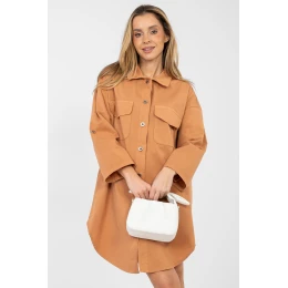 Pohodlné košeľové šaty s voľným strihom, ideálne na každodennú štylizáciu. Model so zapínaním na gombíky a klasickým golierom, ktorý celku dodáva nadčasový charakter. Vďaka hladkému vzoru sú šaty veľmi univerzálne a ľahko sa štylizujú. Sú vyrobené z príjemnej bavlny s prídavkom elastanu, čo zaručuje pohodlie a voľnosť pohybu. Dlhé rukávy s možnosťou zapínania na háčik umožňujú prispôsobiť šaty ročnému obdobiu a individuálnym preferenciám. Dĺžka po kolená a lem strihaný do polkruhu jemne zvýrazňujú postavu a dodávajú ľahkosť. Na prednej strane sa nachádzajú praktické vrecká s plochami, ktoré podčiarkujú štýl šiat. Skvelá ponuka na každý deň do práce, na prechádzku alebo stretnutie v uvoľnenej atmosfére.