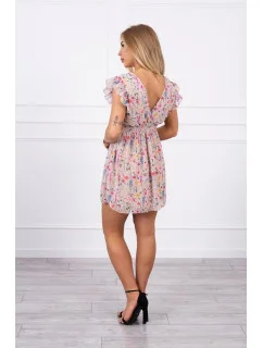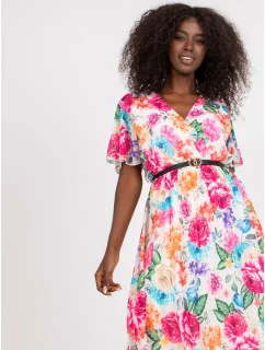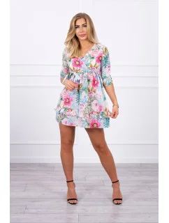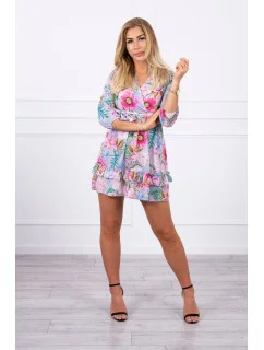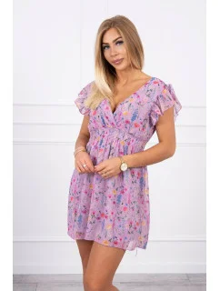 Letné šaty z kvetinovej tkaniny s rozšíreným strihom. Krátke rukávy, obálkový výstrih a nariasená spodná časť. Šaty majú podšívku a opasok.
