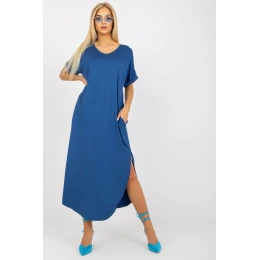 Šaty s krátkymi rukávmi a vreckami na bokoch. Zaoblený lem s rázporkami.