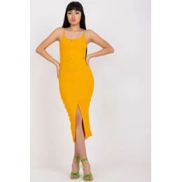 Letné šaty z rebrovanej látky, s ramienkami. Šaty ceruzkového strihu s ozdobnými gombíkmi na prednej strane.