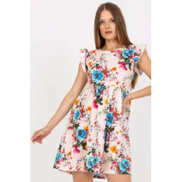 Letné šaty s krátkymi volánovými rukávmi. Šaty z kvetovanej látky, rozšírený lem s volánikom.