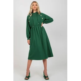 Mikinové šaty s dlhými rukávmi, kapucňou, elastickým pásom a ozdobnými gombíkmi vpredu.