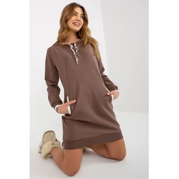 Mikinové šaty s dlhými rukávmi a okrúhlym výstrihom a vreckami na prednej strane.