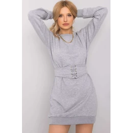 Mikinové mini šaty s dlhými rukávmi a okrúhlym výstrihom. Doplnené opaskom v rovnakej farbe.
