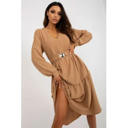 Šaty ležérneho strihu s dlhými rukávmi a výstrihom do V. Šaty s volánikovým lemom a opaskom na doplnenie vzhľadu. Ideálne na každodenné nosenie aj mimo neho.