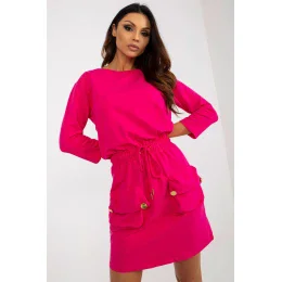 Mikinové šaty s 3/4 rukávmi a okrúhlym výstrihom. Šaty so zaväzovacími ramienkami a vreckami.