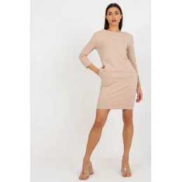 Teplákové šaty s 3/4 rukávmi a okrúhlym výstrihom. Vrecká na bokoch, ozdobné gombíky na rukávoch. Návrh pre mnoho príležitostí.