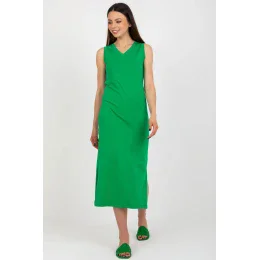 Šaty rovného strihu s výstrihom do V, bez rukávov. Rozparky na bokoch.