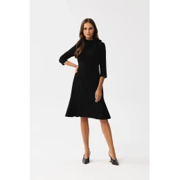 Tieto nádherné šaty s ozdobnou kosticou a stojacím golierom sú ideálnou voľbou na mnohé príležitosti. Trojštvrťové rukávy dodávajú šatám ľahkosť a dĺžka po kolená ich robí univerzálnymi. Na chrbte je volánik, ktorý dodáva šmrnc. Šaty sú bez podšívky, ale ľahko sa obliekajú vďaka krytému zadnému zipsu. Tieto šaty boli navrhnuté a vyrobené v Poľsku, čo svedčí o ich kvalite a jedinečnosti. Dodajú vám sebavedomie a štýl na rôzne príležitosti.