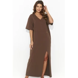 Voľné dlhé šaty s krátkymi rukávmi dodávajú šarm a nadčasový štýl. Šaty upútajú pozornosť rozparkom v prednej časti, ktorý dodáva jemnú eleganciu, a pás zdobí ozdobná zlatá platnička, ktorá jemne upozorňuje na ženskú siluetu. Sladký výstrih zvýrazňuje krk a kľúčne kosti a dodáva šatám ženský pôvab. Vďaka veľmi ležérnemu strihu sú šaty zároveň ideálnou voľbou na letné dni, pričom zaručujú nielen dokonalý vzhľad, ale aj pohodlie. Šaty sú dostupné v rôznych farbách a sú ideálnou voľbou pre ženy, ktoré si cenia pohodlie a módu bez ohľadu na trendy.