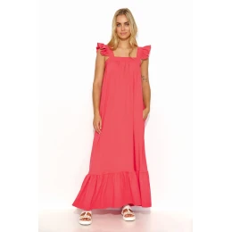 Maxi šaty s volánky na ramínkách a ve spodní části jsou kvintesencí letního stylu a ležérnosti. Díky praktickým postranním nakládaným kapsám vypadají šaty nejen stylově, ale jsou také funkční. Díky volnému střihu jsou mimořádně pohodlné a vhodné pro nejrůznější příležitosti. Lze je nosit volně, a zvolit tak lehkost a ležérnost, nebo je sepnout páskem, který zvýrazní pas a dodá kreaci výraznější tvar. Je k dispozici v různých barvách, takže vám umožní přizpůsobit se vašemu stylu a náladě. Tyto šaty jsou ideální na procházku po molu nebo na romantickou večeři při západu slunce, budete v nich vypadat nejen stylově, ale budou také pohodlné a lehké na nošení, takže si budete moci naplno užívat letních chvil.