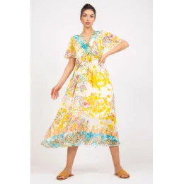 Tyto šaty jsou typickým příkladem každodenní elegance, která v sobě spojuje pohodlí a styl. Díky barevnému potisku dodávají šatům zábavný a energický nádech a skvěle se hodí pro každou příležitost. Díky rozšířenému střihu jsou mimořádně ženské a hodí se na společenské akce i do práce. Šaty jsou vyrobeny z polyesteru, snadno se udržují a ošetřují, přičemž si dlouho zachovávají dokonalý vzhled. Jejich midi délka jim dodává univerzální charakter, který lze snadno přizpůsobit různým příležitostem. Krátké rukávy a obálkový výstřih dodávají šatům jemnost a ženskou eleganci a zdůrazňují jemnost siluety. Šaty jsou navíc podšité pro větší pohodlí a lepší padnutí. Pro zvýraznění pasu a dodání většího šmrncu je součástí šatů pásek v barvě potisku. Díky kombinaci stylu, pohodlí a funkčnosti se tyto šaty stanou nepostradatelným kouskem šatníku, díky kterému bude každý den plný sebevědomí a elegance.