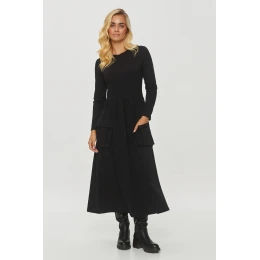 Rozopnuté šaty sú skvelou voľbou pre tých, ktorí oceňujú kombináciu štýlu a funkčnosti. Model má klasický, ženský strih v midi dĺžke s rozšírenou spodnou časťou. Je vyrobený z mäkkého, príjemného materiálu, ktorý sa skvele hodí na bežné nosenie. Šaty majú dlhé rukávy, vďaka čomu sú ideálne na chladnejšie dni. Rozdelenie v páse vytvára efekt jemných záhybov, ktoré zvýrazňujú siluetu a dodávajú šatám šarm. Výrazným prvkom sú veľké vsadené vrecká vpredu, navyše zdobené elegantnými pozlátenými ozdobami, ktoré nielenže dodávajú štýl, ale plnia aj praktickú funkciu. Tento model spája pohodlie a módny dizajn, vďaka čomu je ideálnou voľbou na rôzne príležitosti.