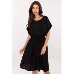 Tieto letné viskózové šaty s rozšíreným strihom sú pohodlnou a štýlovou ponukou na každodenné vychádzky. Sú vyrobené z ľahkej, priedušnej viskózy a poskytujú pohodlie aj počas horúcich dní. Hladký materiál a dĺžka nad kolená im dodávajú univerzálny charakter, ktorý je vhodný na prechádzky aj stretnutia s blízkymi. Krátke rukávy a klasický okrúhly výstrih zdôrazňujú jednoduchosť a ženskosť modelu. Ďalšou výhodou je viazanie v páse, ktoré zvýrazňuje pás a dodáva postave ľahkosť. Sú to ideálne letné šaty vzdušné, praktické a vždy v móde.
