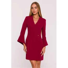 Elegantní šaty ušité z hladké látky s matným povrchem jsou ideální volbou pro ženy, které ocení jednoduchost a moderní styl. Lehce talírovaný střih jemně zdůrazňuje siluetu, zůstávaje volný směrem dolů. Model má výstřih ve tvaru písmene V, který krásně zjemňuje krk a dodává lehkost. Rukávy délky 7/8, lehce rozšířené dole, přinášejí jemný, vzdušný akcent. Šaty se zapínají vzadu na skrytý zip, co zajišťuje pohodlí a estetické dokončení. Pas je navíc zdůrazněn kovovou destičkou s logem, která dodává celku jemný, elegantní charakter. Chybějící kapsy a minimalistický design zdůrazňují moderní, ženský styl šatů. Mini délka přidává mláděžnický výraz a zdůrazňuje nohy. Navrženo a ušito v Polsku, vytvořeno pro ženy, které ocení klasiku s jemným, moderním akcentem.
