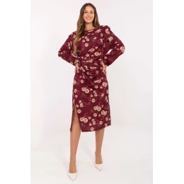 Tieto elegantné midi šaty s jednoduchým, klasickým strihom sú ideálnou voľbou na mnohé príležitosti v práci, na obchodné stretnutia alebo každodenné vychádzky. Sú vyrobené z kvalitnej zmesi viskózy a polyesteru, takže spájajú pohodlie s odolnosťou. Kvetinový vzor dodáva šatám romantický nádych a zabudované ramenné vypchávky jemne zvýrazňujú siluetu. Model s dlhými rukávmi a okrúhlym výstrihom pôsobí veľmi elegantne. Prevísanie na pravej strane v páse a efektné záhyby krásne modelujú postavu, čím jej dodávajú ľahkosť a ženský pôvab. Šaty nemajú zapínanie, vďaka čomu sa pohodlne obliekajú.