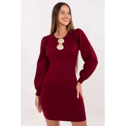Elegantní pletené šaty ve stylu olivového olověného střihu jsou ideální volbou na každý den, do práce i na výjimečné příležitosti. Jejich hladký vzor zdůrazňuje nadčasový, minimalistický charakter, který se skvěle hodí jak k jednoduchým, tak k výraznějším stylizacím. Model je vyroben z měkké a elastické směsi viskózy a polyesteru, díky čemuž se šaty skvěle přizpůsobí postavě, jsou pohodlné a příjemné na nošení. Mini délka dodává ženský půvab, zatímco dlouhý rukáv zajišťuje, že se šaty skvěle hodí i do chladnějších dnů. Kulatý výstřih zdůrazňuje klasickou linii, zatímco nafouklé rukávy dodávají celku módní, elegantní akcent a lehkost. Styl doplňují odpínatelné zlaté brože, které lze libovolně aranžovat nebo úplně sundat, vytvářejíce různé varianty stylizace, od decentních po velmi efektní. Jsou to šaty, které spojují pohodlí pleteniny se šarmem elegantního střihu, ideální pro ženy, které ocení ele