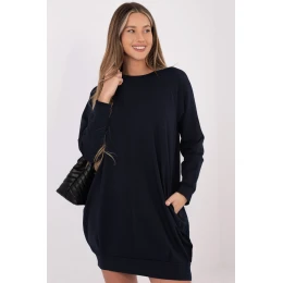 Tieto šaty s jednoduchým strihom sú ideálnou ponukou na každý deň. Sú vyrobené z kvalitnej bavlny s prídavkom elastanu a poskytujú pohodlie a voľnosť pohybu počas celého dňa. Hladký materiál im dodáva univerzálny, minimalistický charakter, vďaka čomu sa ľahko kombinujú s rôznymi stylingami. Model nad kolená s dlhými rukávmi je ideálnou voľbou na každodenné situácie, do práce, na prechádzku alebo stretnutie s priateľmi. Okrúhly výstrih zdôrazňuje klasický strih šiat, zatiaľ čo absencia zapínania zvyšuje pohodlie pri nosení. Ďalšou výhodou sú praktické vrecká ukryté vo švíkoch na bokoch, ktoré zvyšujú funkčnosť a dodávajú celkovému vzhľadu voľný, ležérny štýl.