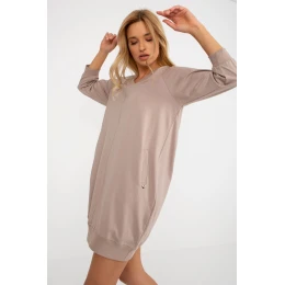 Tieto pohodlné šaty s jednoduchým strihom sú skvelým návrhom na každodennú štylizáciu, v ktorej sa spája pohodlie pri nosení s ležérnym štýlom. Hladký vzor im dodáva univerzálny charakter, vďaka čomu ich ľahko zladíte s rôznymi doplnkami. Model s dĺžkou po kolená a praktickými vreckami zaručuje funkčnosť a voľnosť pohybu. 3/4 rukávy umožňujú nosiť šaty väčšinu roka a ženský výstrih jemne zvýrazňuje siluetu a dodáva ľahkosť. Konštrukcia bez gombíkov podčiarkuje jednoduchý a pohodlný strih modelu. Šaty sú vyrobené z kvalitnej zmesi bavlny a elastanu, vďaka čomu sú mäkké, elastické a príjemné na dotyk. Ideálna voľba pre ženy, ktoré ocenia pohodlie, praktické detaily a nadčasový štýl na každý deň.