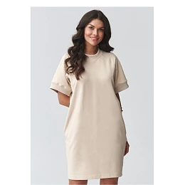 Elegantní a velmi pohodlné oversized šaty jsou ideální volbou pro ženy, které ocení spojení pohodlí a módního vzhledu. Volný střih poskytuje plnou volnost pohybu a minimalistický střih zase dělá model ideálním pro každodenní stylizace. Model má krátký rukáv a klasický, zakrytý výstřih, což mu dodává univerzální charakter. Další výhodou jsou praktické kapsy po stranách, které zvyšují funkčnost a pohodlí nošení. Správná délka zase zajišťuje, že šaty vypadají skvěle jak samy o sobě, tak i ve spojení s oblíbenými doplňky. Je to skvělý každodenní casualový model, který se hodí na procházky, nákupy, cestování nebo setkání v uvolněné atmosféře. Můžeš je nosit se teniskami, kotníčkovými botami nebo elegantnějšími botami, vytvářející různorodé stylizace.
