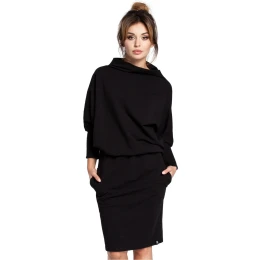 Atraktívne kimonové šaty s rebrovanými rukávmi, vysokým komínovým výstrihom a praktickými bočnými vreckami. Voľnejší strih s elastickým pásom.